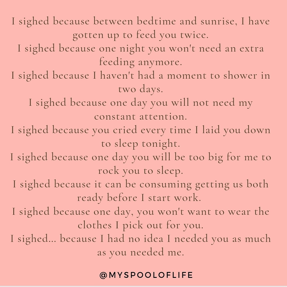 I sighed because one day you will not need my constant attention.